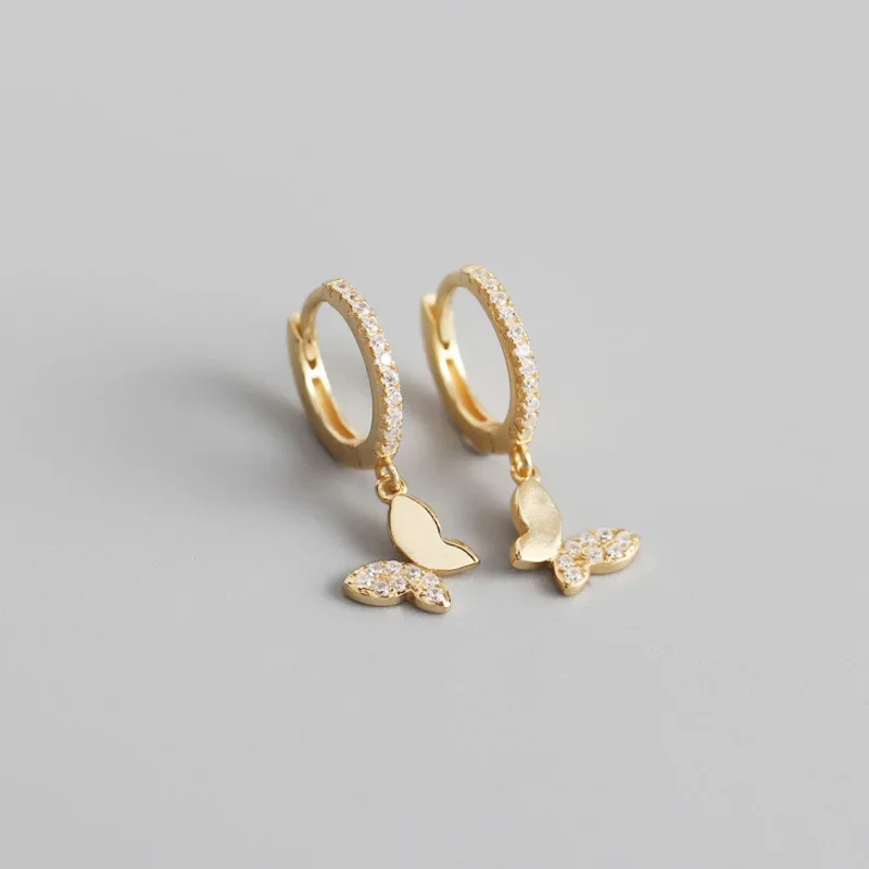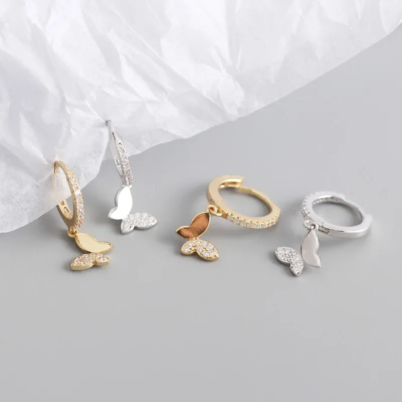 925 Sterling Silver Butterfly Hoop Earrings for Women Shiny CZ Gold Silver Jewelry Gifts