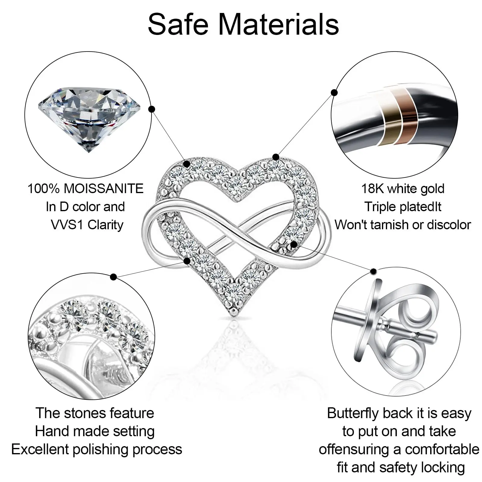 Fine Jewelry Earring 925 Sterling Silver Stud Earrings Heart Design Moissanite Diamond Earring Plating 18k Gold Earrings