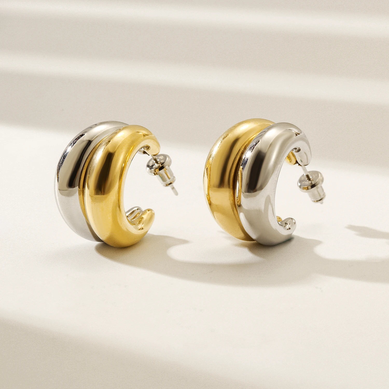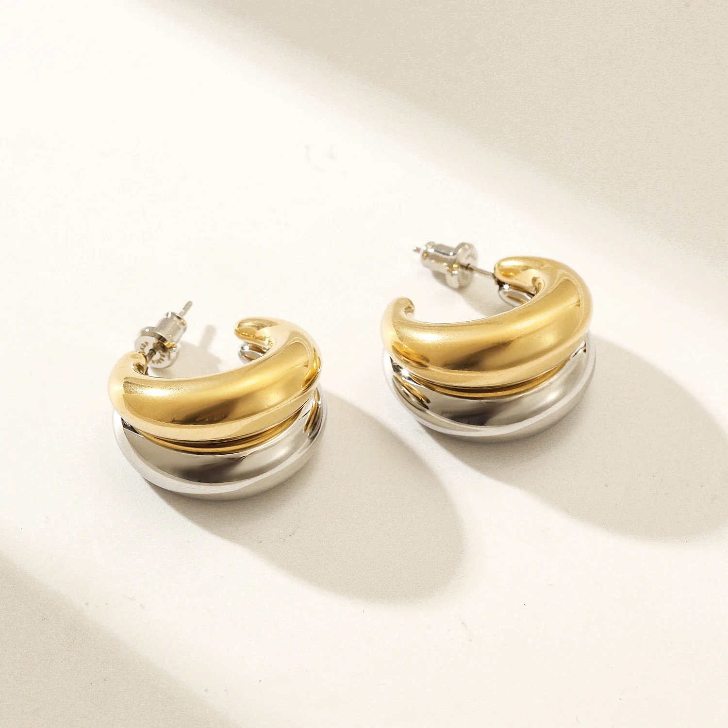 1.2 Tone Double Layer Earrings: This pair of hip hop earrings is designed with an eye-catching double layer look, featuring 316L stainless steel for durability and a touch of elegance.
