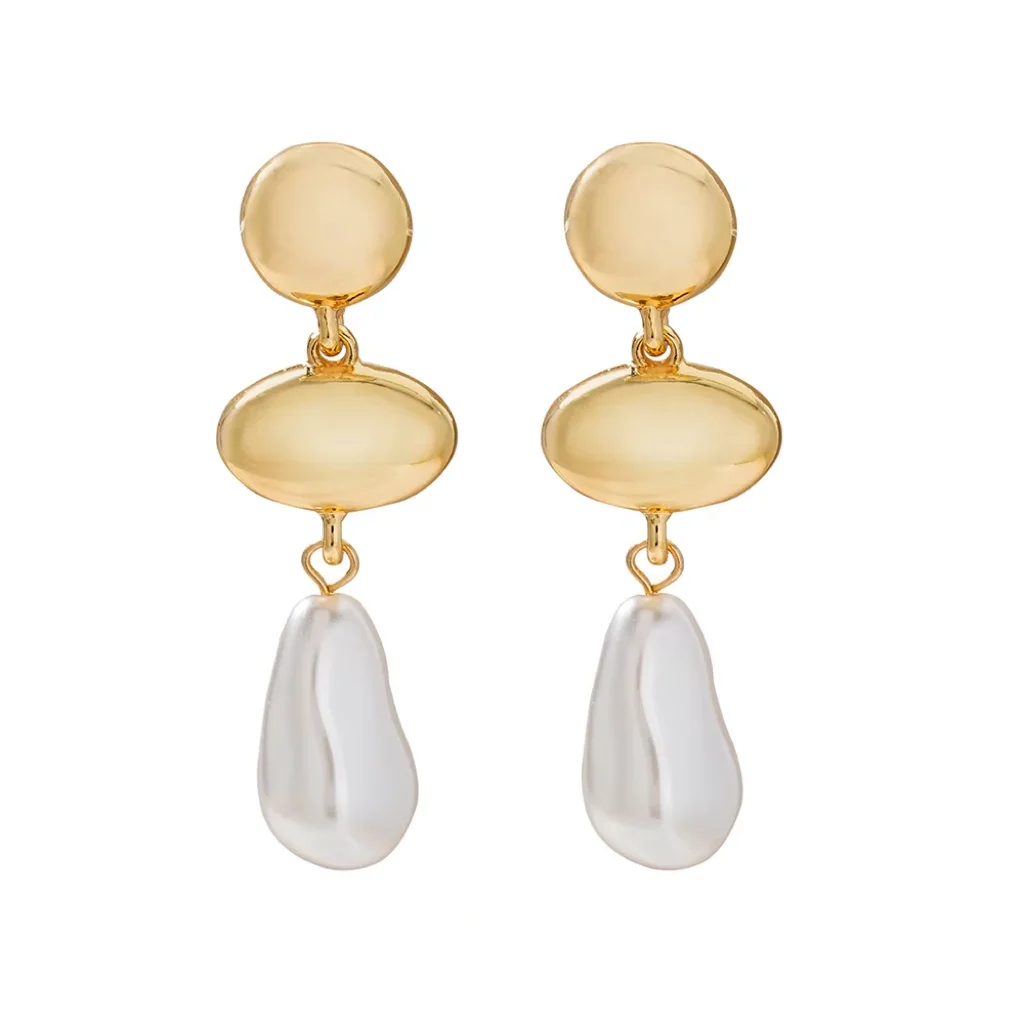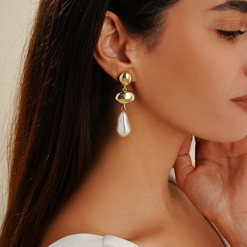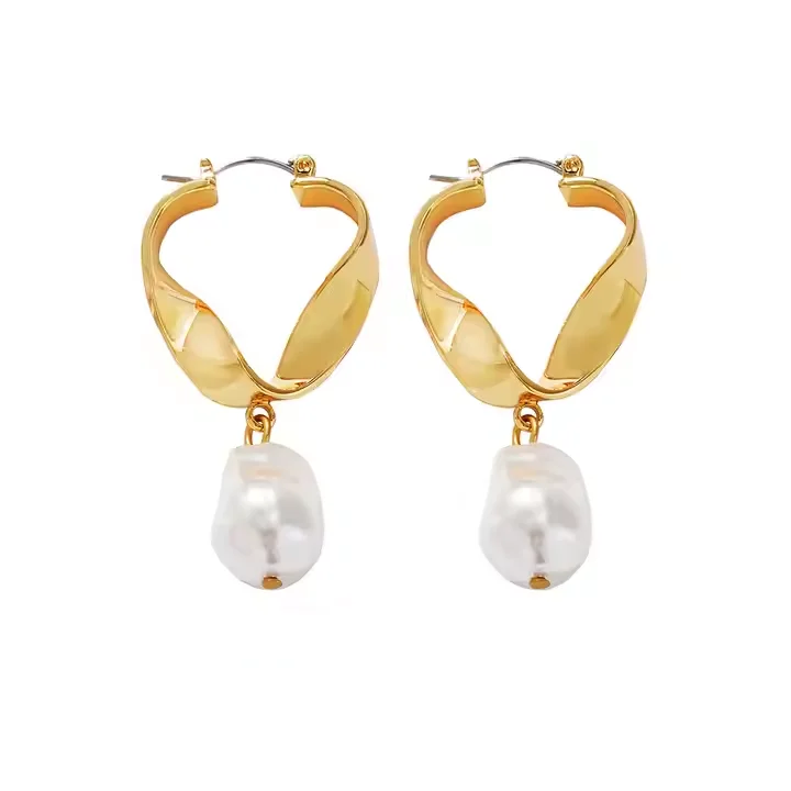USA Stock New Arrival Trendy Gold Plated Pearl Drop Earrings for Women Minimalist Geometric Hoop Earrings Jewelry